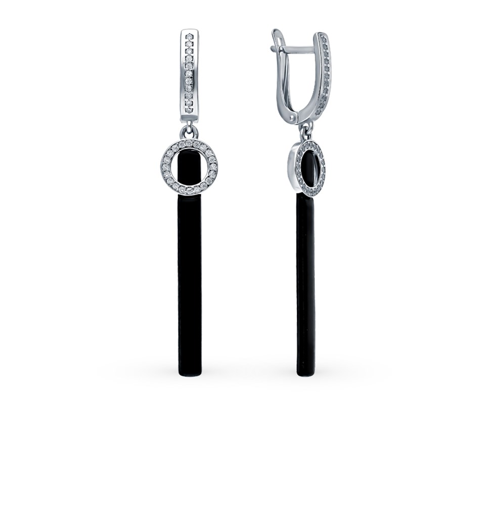 Серебряные серьги с фианитами и керамикой